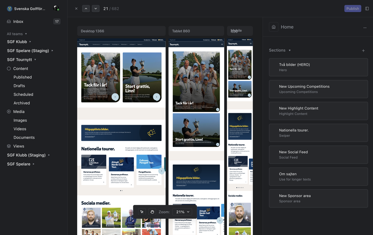Thanks to Strife’s headless architecture, we’ve had the freedom to choose a modern tech stack that fits the project’s needs: Tailwind, Astro and Svelte. The result? Fast response times, smooth editing, and a top-tier user experience.